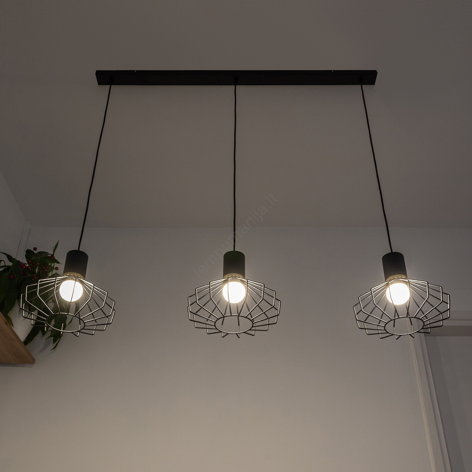 Pakabinamas šviestuvas su laidu SOLANO 3xE27/15W/230V juodas/auksinis pasižymi gražiu ir funkcionaliu dizainu.  Šviestuvui tinka lemputė su E27 dangteliu. Čia galite įsigyti kitų lempučių palankiomis kainomis. Įdomus jūsų namų priedas.
