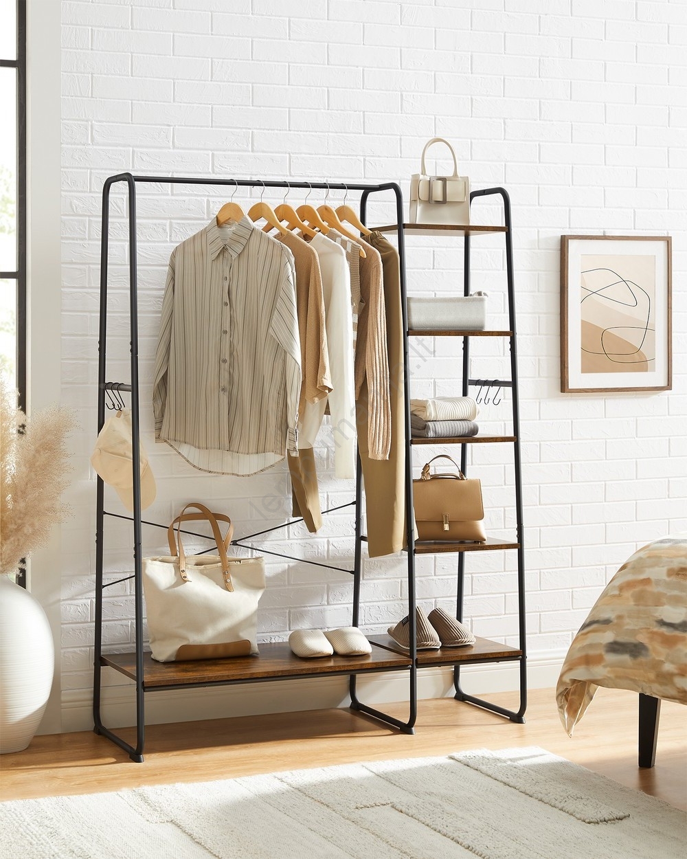 Pastatoma drabužių kabykla LINEA, ruda/juoda