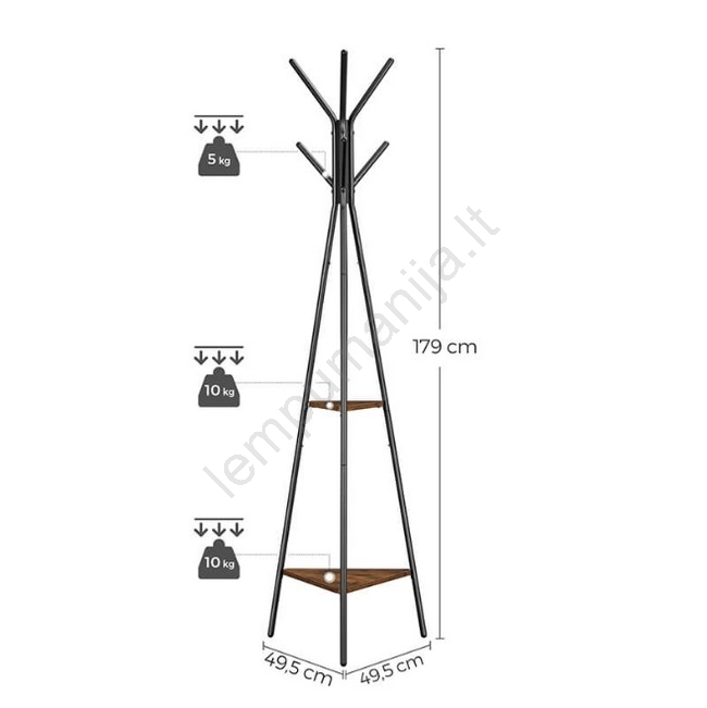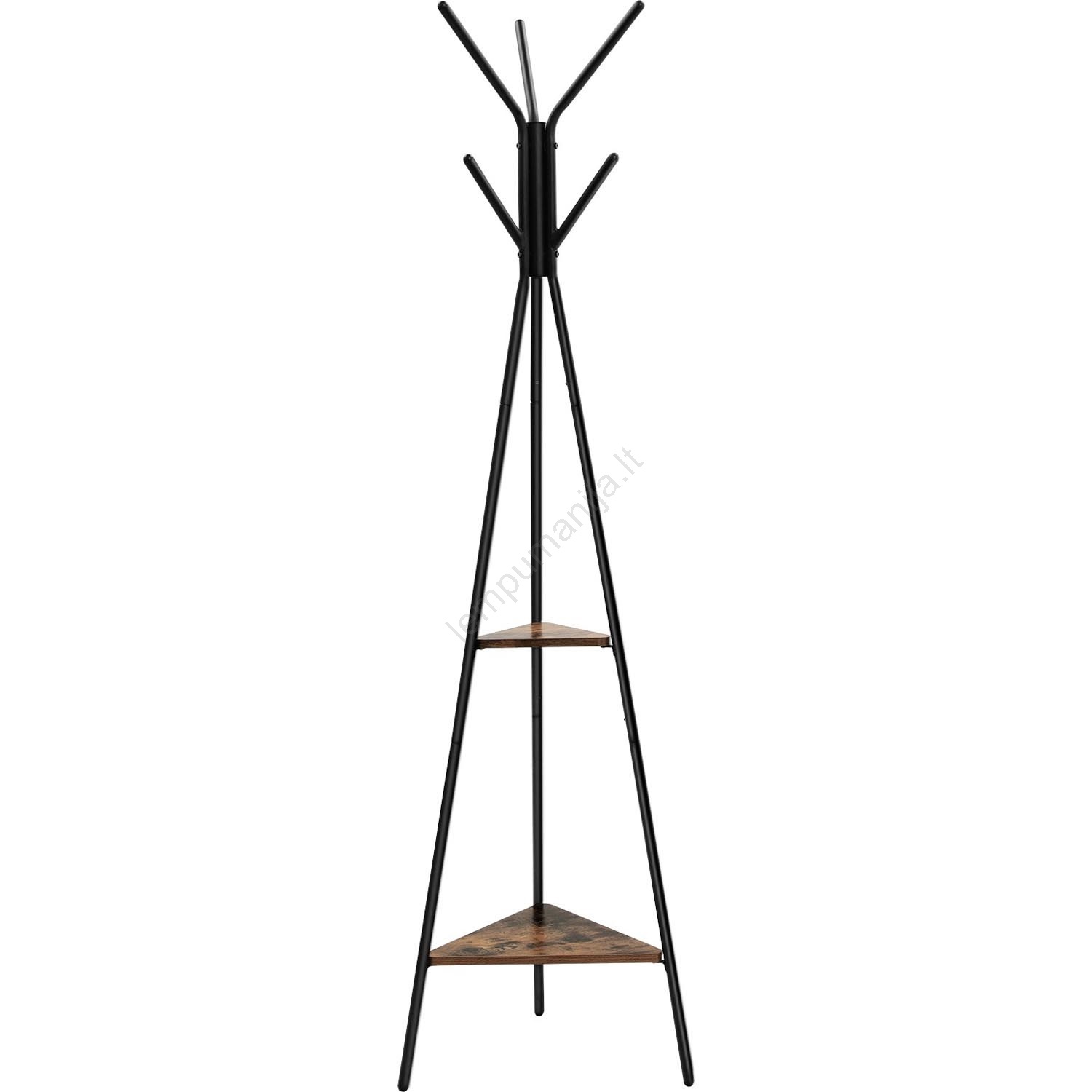 • Kabyklė su paprastu trikampiu pagrindu pasižymi 6 elegantiškais kabliukais ir dviem tvirtomis lentynomis.