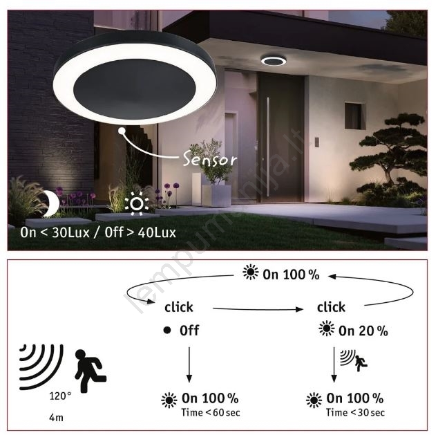 Paulmann 94526 - LED/14W IP44 Lauko lubinis šviestuvas su jutikliu CIRCULA 230V | Lempumanija
