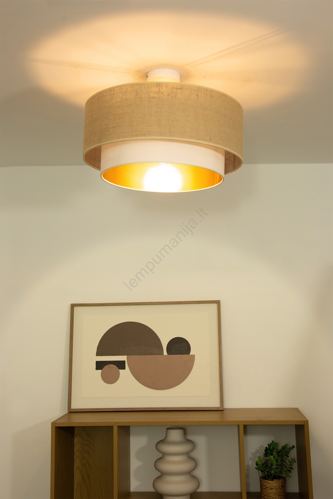 • Prie lubų montuojamas šviestuvas SARTA 1xE27/60W/230V Ø45 cm varinis/džiutas