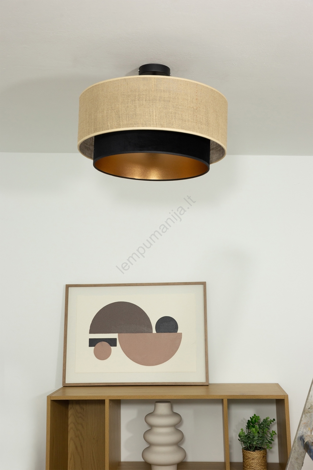 Paviršinis lubų šviestuvas SARTA 1xE27/60W/230V juoda/džiutas | Lempumanija