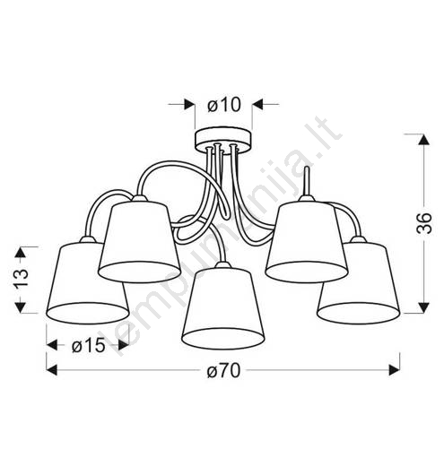 Kabinamas sietynas LUK 5xE14/40W/230V pasižymi gražiu ir funkcionaliu dizainu.  Šviestuvui tinka lemputė su E14 dangteliu. Čia galite įsigyti kitų lempučių palankiomis kainomis. Įdomus jūsų namų priedas.