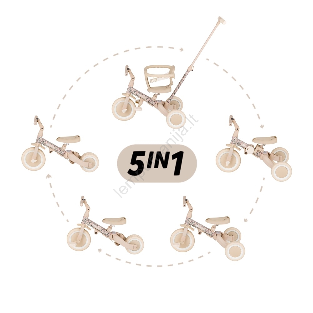 • Daugiafunkcinė triratė su 5 režimais, pritaikytais pagal vaiko amžių ir įgūdžius.