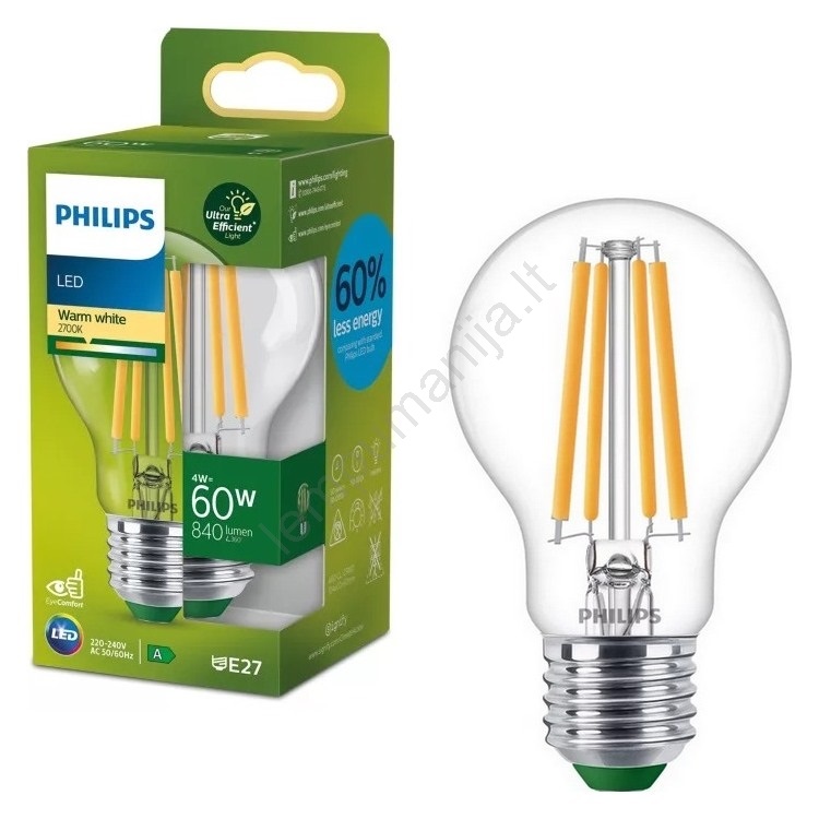 • Philips ULTRAEFFICIENT VINTAGE LED lemputė A60 E27/2,3W/230V 2700K