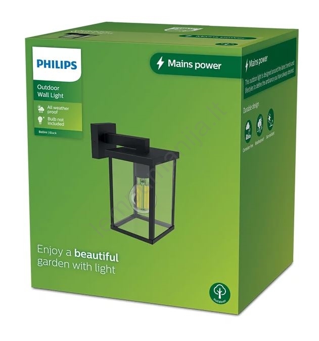 Philips - Lauko sieninis šviestuvas BELLINI 1xE27/25W/230V IP44 pasižymi gražiu ir funkcionaliu dizainu.  Šviestuvui tinka lemputė su E27 dangteliu. Čia galite įsigyti kitų lempučių palankiomis kainomis. Įdomus jūsų namų priedas.