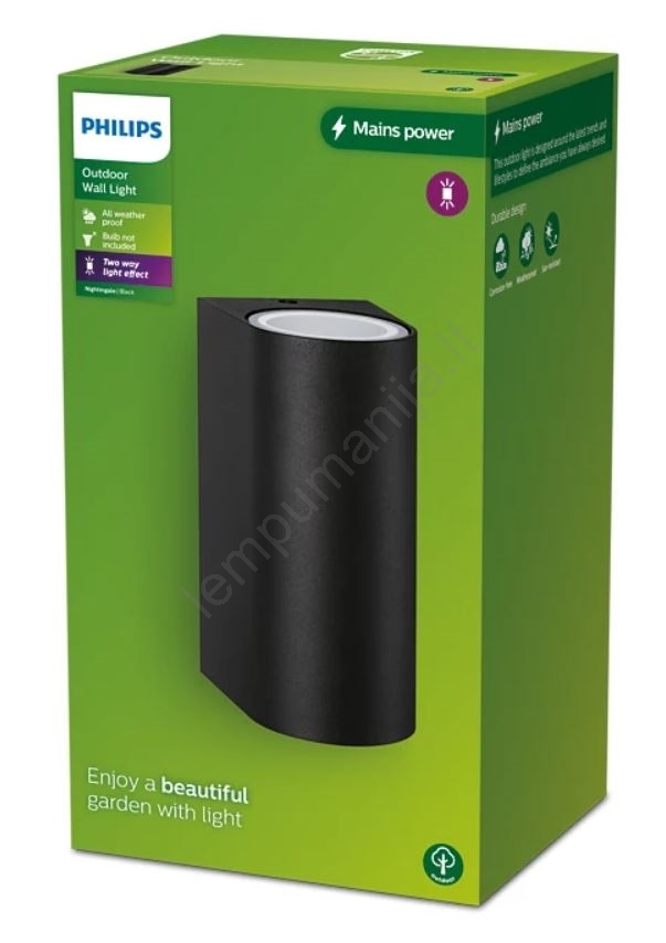 Philips - Lauko sieninis šviestuvas NIGHTINGALE 2xGU10/35W/230V IP44 pasižymi gražiu ir funkcionaliu dizainu.  Šviestuvui tinka lemputė su GU10 dangteliu. Čia galite įsigyti kitų lempučių palankiomis kainomis. Įdomus jūsų namų priedas.