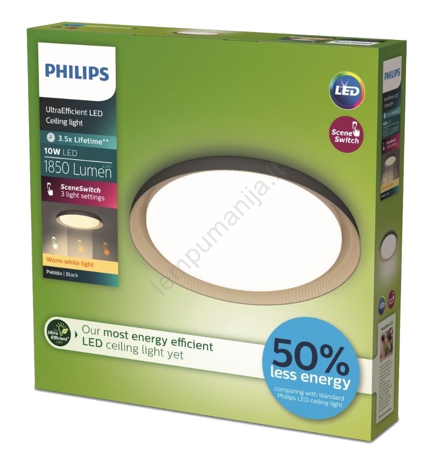 Philips - LED Pritemdomas lubinis šviestuvas PEBBLO LED/10W/230V 2700K juoda | Lempumanija
