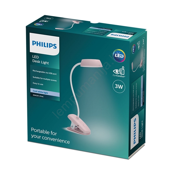 Philips - LED Pritemdomas šviestuvas su segtuku DONUTCLIP LED/3W/5V 1200 mAh rausva | Lempumanija