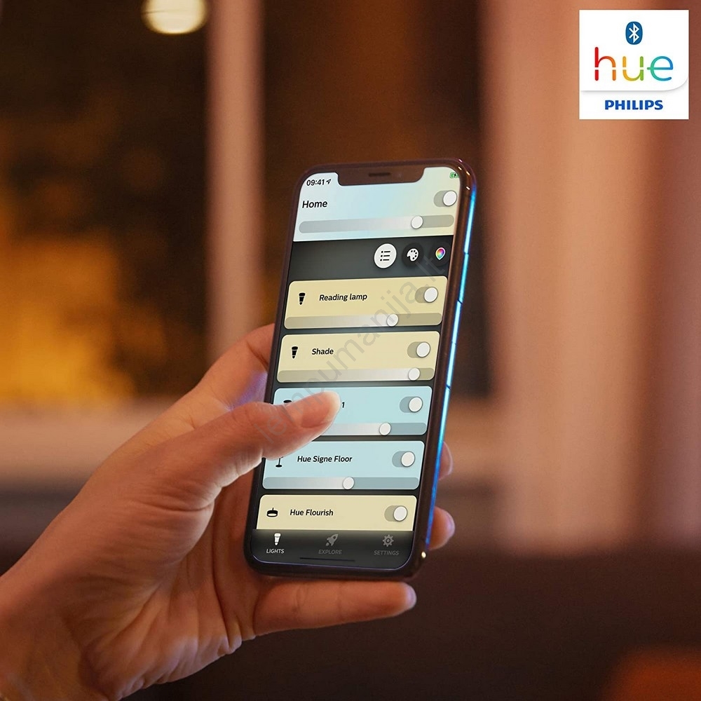 • Galite pridėti iki dešimties išmaniųjų šviestuvų ir valdyti juos paprastu mygtuko paspaudimu savo mobiliajame įrenginyje, o norint išplėsti prijungtų šviestuvų skaičių, įsigykite Hue Bridge.