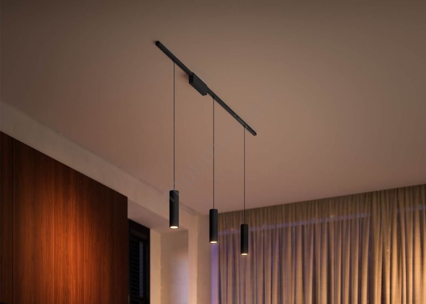 • LED RGB pabinamas sietynas ant bėgių sistemos stygos iš Philips serijos PERIFO.