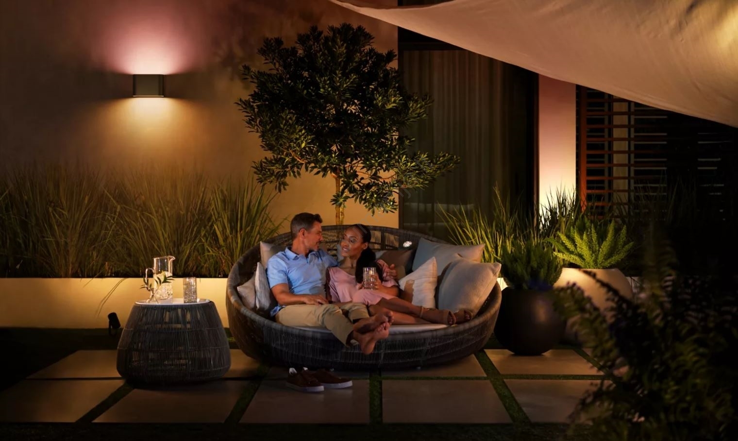 Atraskite išskirtinumą su išmaniuoju Philips Hue apšvietimu. Mėgaukitės maloniai prislopinta šviesa daugybėje spalvų arba apšvieskite tamsias sodo kerteles, kad sukurtumėte ramybės atmosferą. Su Philips Hue jūsų sodas prabunda iš tamsos į mėgstamas spalvas, kurios sukuria romantišką saulėlydį, žaismingą dieną ar bet kokią kitą nuotaiką, kokią tik pageidaujate. Taip pat verta išbandyti originalias iš anksto nustatytas scenas pagal Philips Hue programėlę.