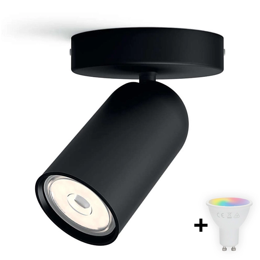 • Philips - LED RGBW dimeriuojamas taškinis šviestuvas PONGEE 1xGU10/4,8W/230V 3000K juodas + su nuotoliniu valdymu