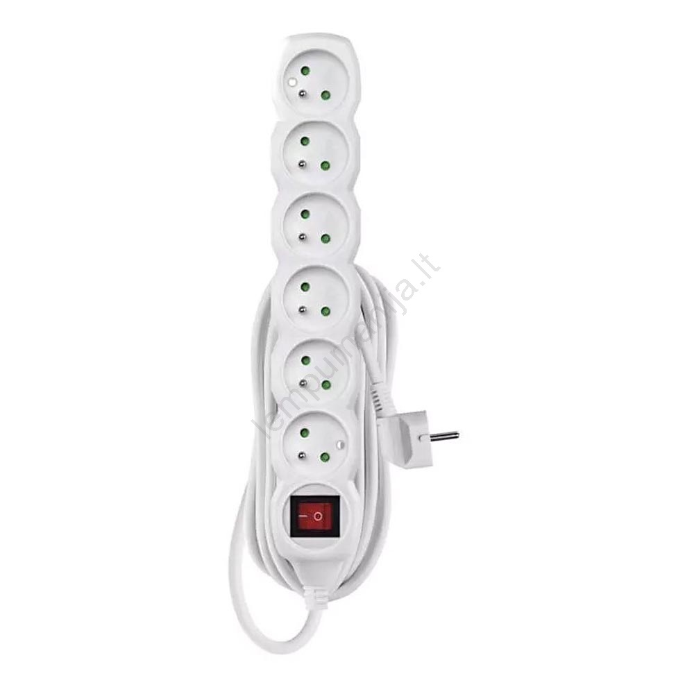 Prailginimo laidas su jungikliu 6 lizdų 5 m baltas