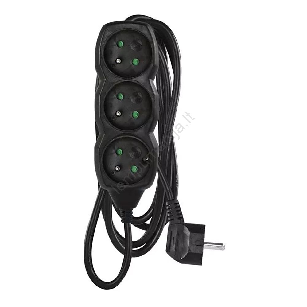 Pratęsimo laidas 3 lizdai 3 m juodas