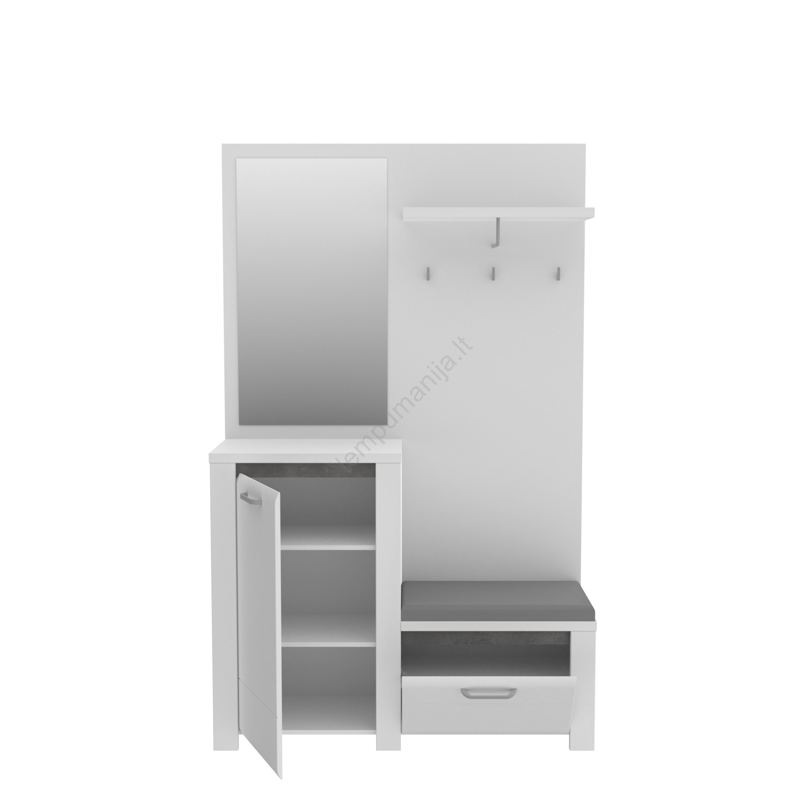 Prieškambario sienelė su veidrodžiu HIRO, balta/pilka | Lempumanija