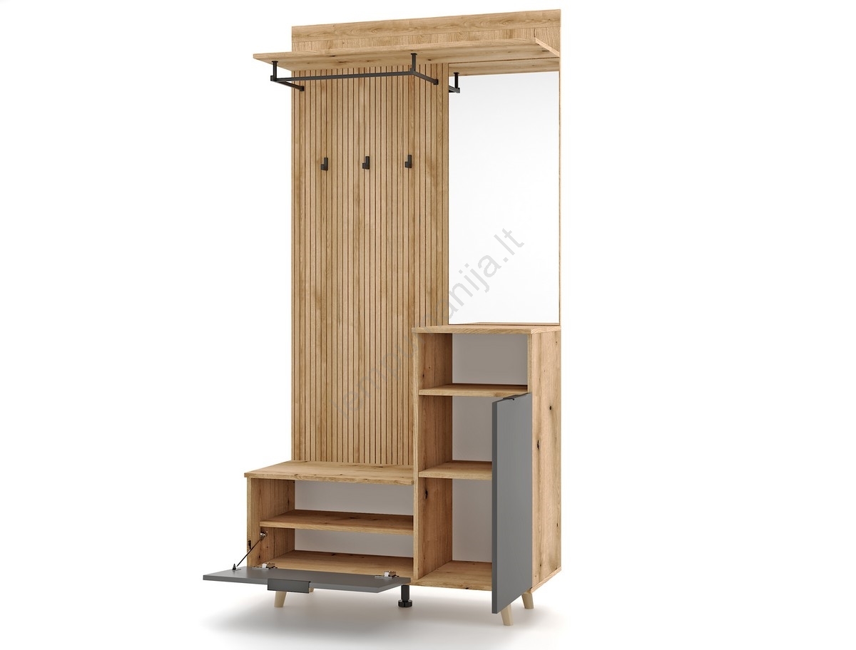 • Atvira lentyna, kabliukai, pakabų strypas ir didelis veidrodis siūlo viską, ko jums reikia.