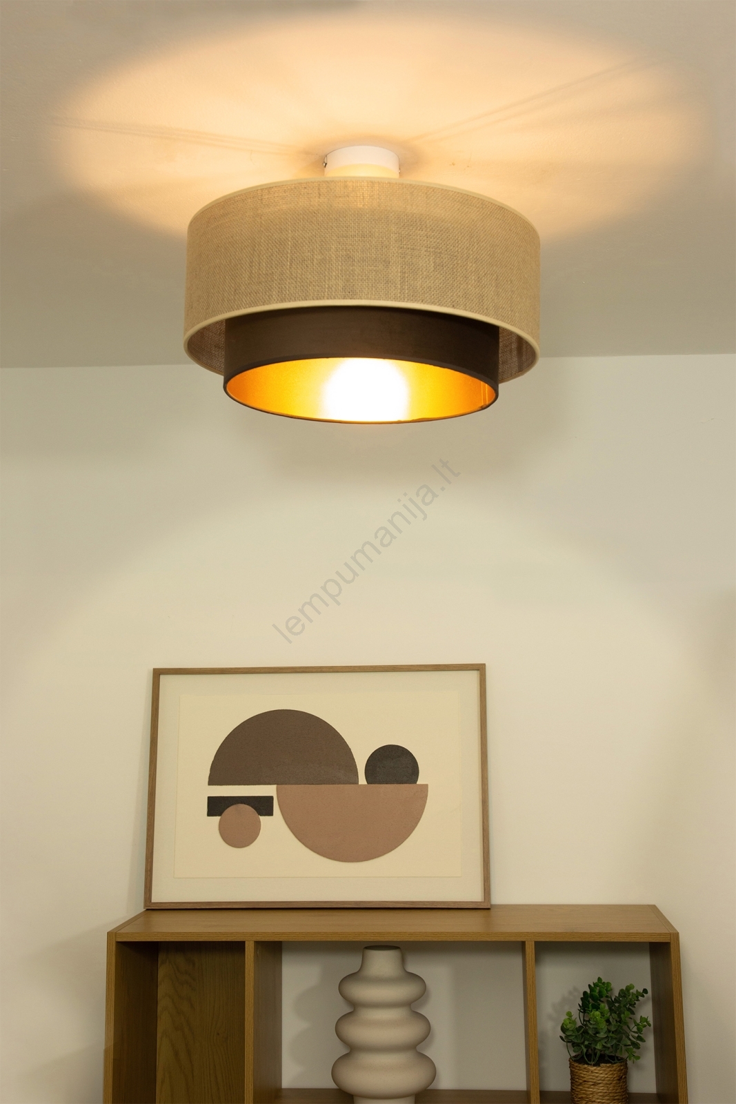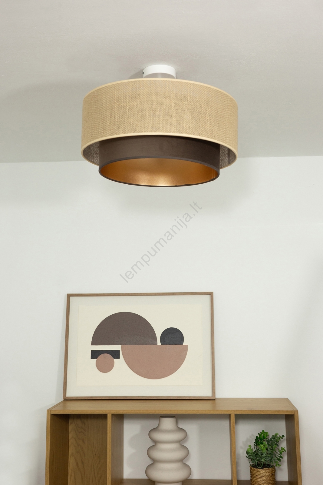 • Pritvirtinamas lubų šviestuvas SARTA 1xE27/60W/230V skersmuo 45 cm ruda/džiutas