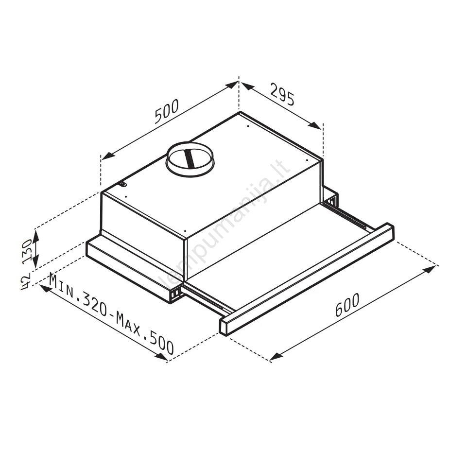 • 110 W variklis ir 550 m3/h oro srauto galingumas efektyviam garų ir kvapų ištraukimo.