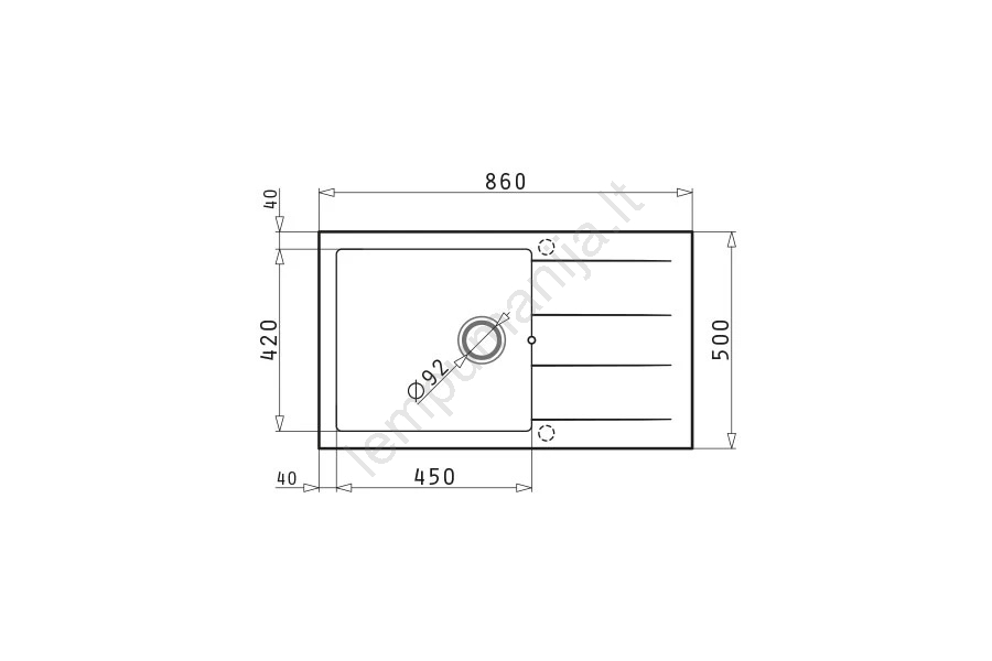 • Nutekėjimo angos skersmuo: 92 mm.