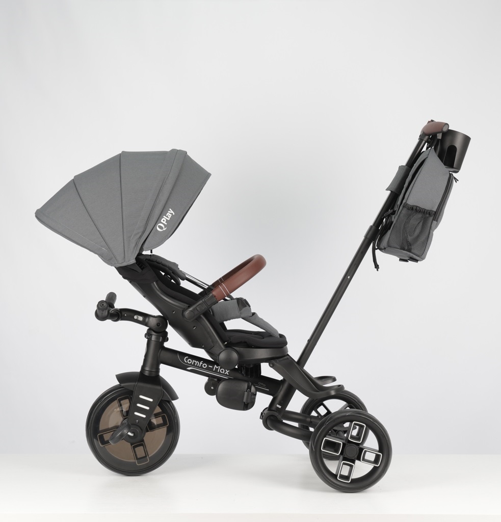 QPlay - Vaikiškas triratukas 7 viename COMFO MAX pilkas | Lempumanija