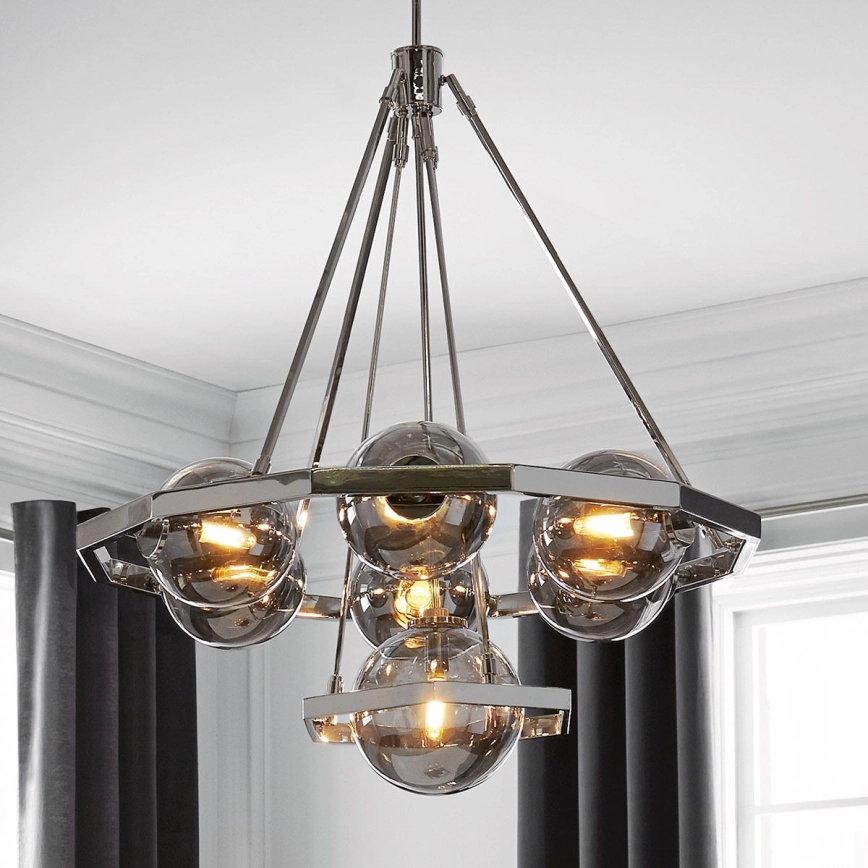 Quintiesse - Pakabinamas šviestuvas ant strypo HARPER 7xE14/60W/230V, skersmuo 81,3 cm, blizgus chromas / rūkytas stiklas pasižymi gražiu ir funkcionaliu dizainu.  Šviestuvui tinka lemputė su E14 dangteliu. Čia galite įsigyti kitų lempučių palankiomis kainomis. Įdomus jūsų namų priedas.