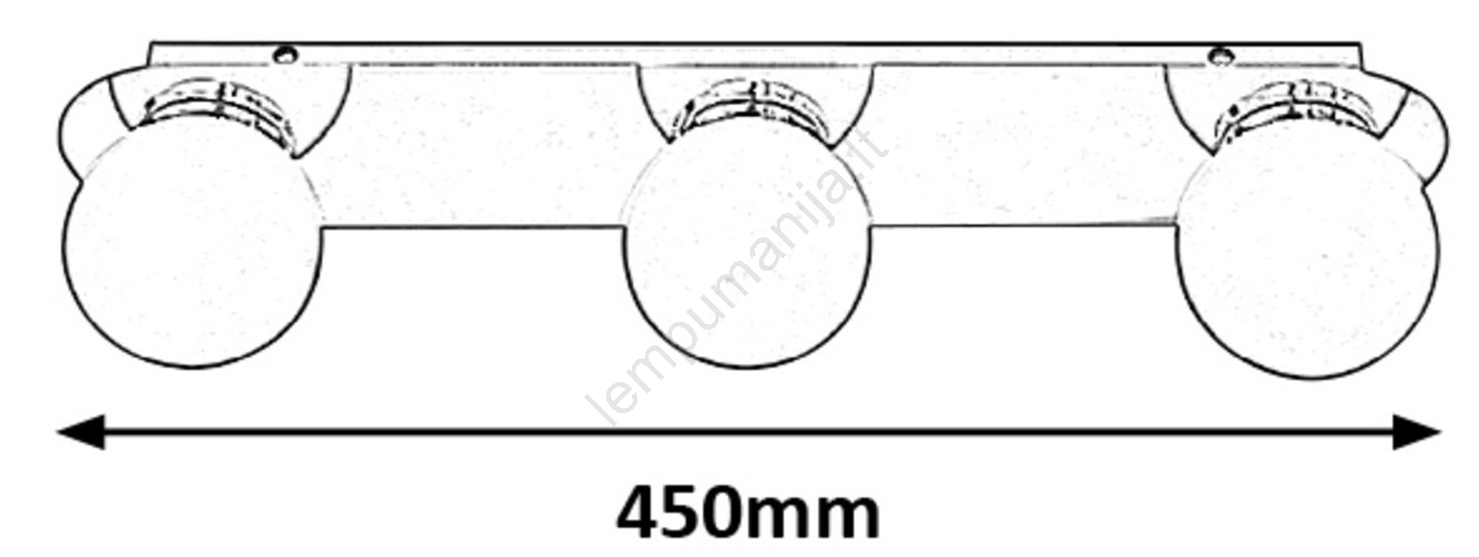• Bendras trijų lempų lubinio šviestuvo plotis yra 450 mm.