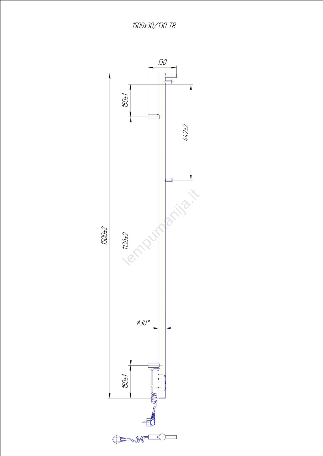 Rankšluosčių džiovintuvas RAY 35W/230V 150x30 cm IP44, nerūdijančio plieno / juoda