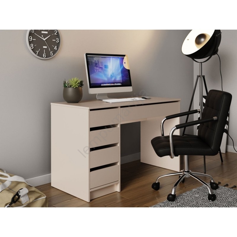 • Stalas pasižymi švariomis linijomis, stalčių atidarymu be rankenėlių ir dideliu pritaikomumu – stalčių bloką galima montuoti tiek kairėje, tiek dešinėje pusėje.