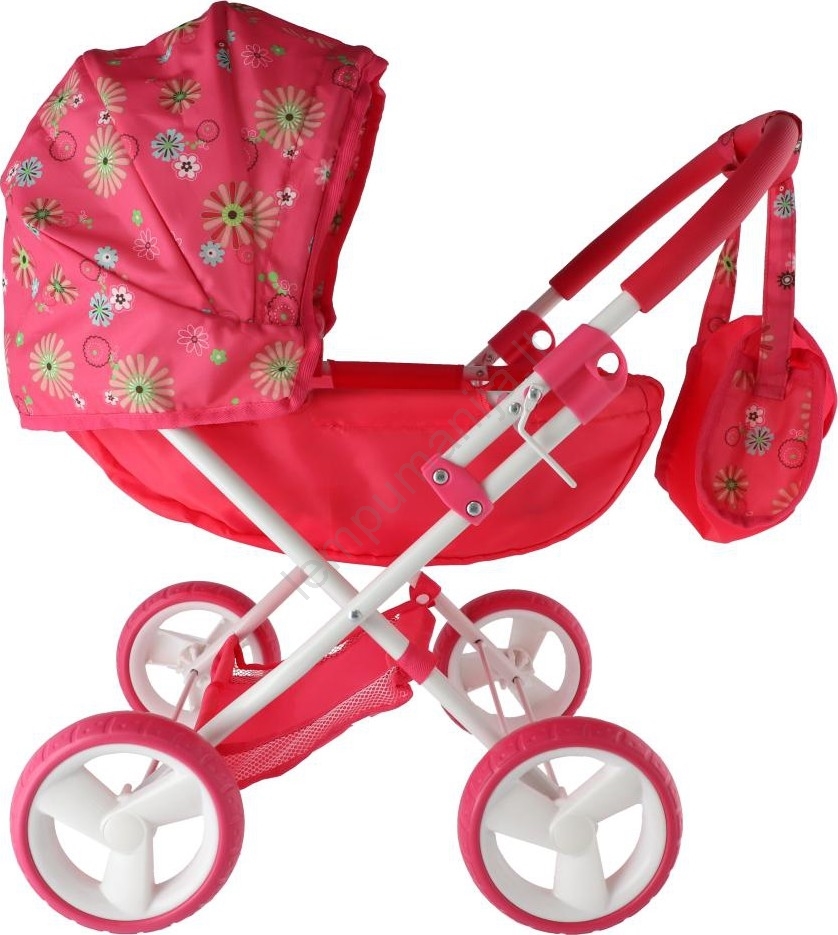 • Lėlių vežimėlis su daiktų krepšeliu ir praktišku stogeliu.