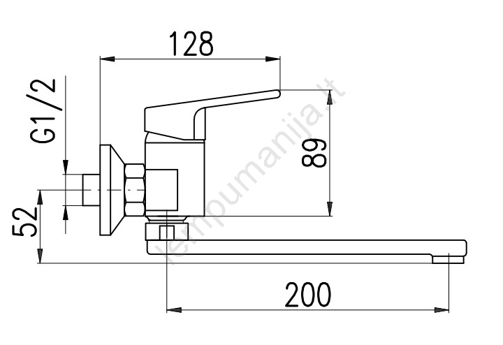 • Sieninis kriauklės maišytuvas su plokščiu snapu 200 mm.