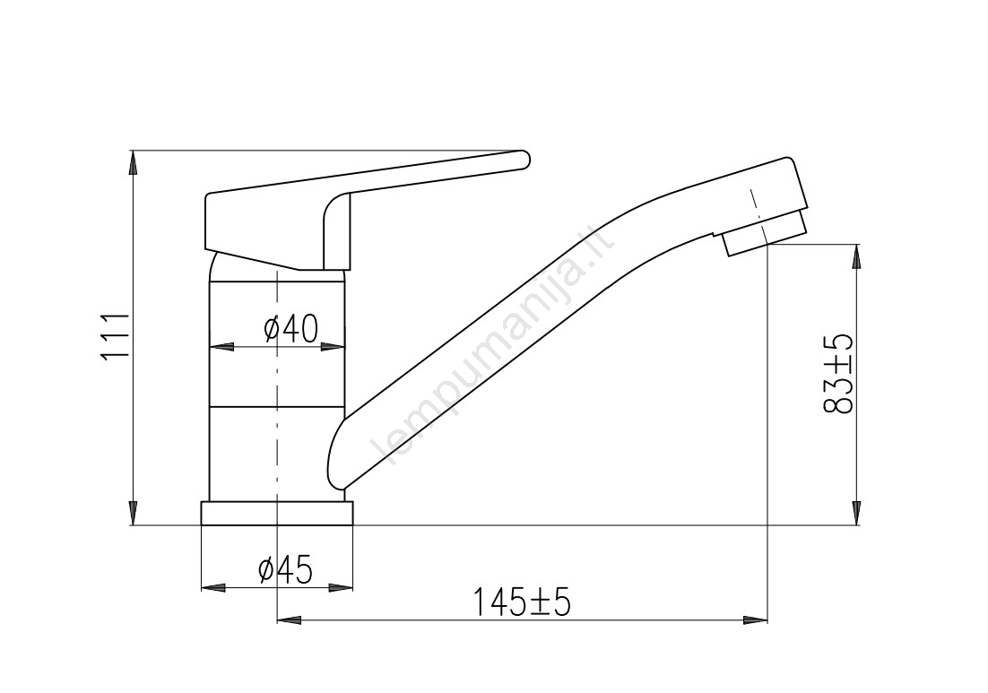 • Stalinis praustuvo maišytuvas be išleidimo vožtuvo su pasukamu snapu 150 mm.