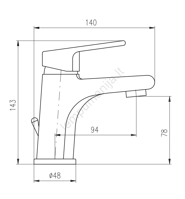 • Stalviršinis praustuvo maišytuvas su nuotėka.