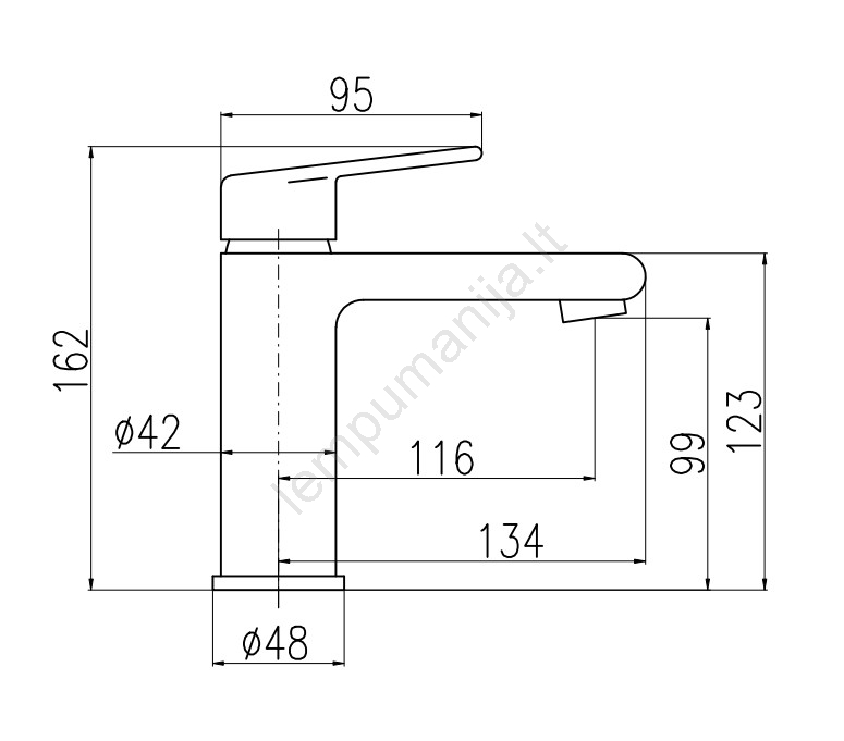 • Ant praustuvo montuojamas maišytuvas be praustuvo uždarymo mechanizmo.