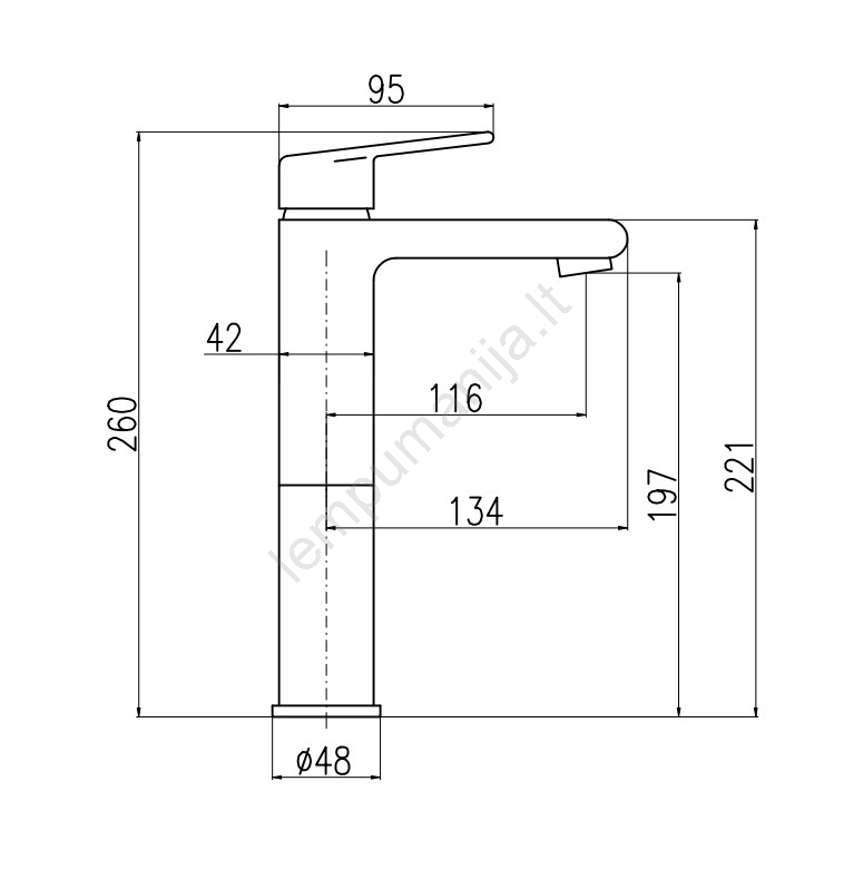 • Praustuvo maišytuvas, montuojamas ant stalviršio, be nuotekio vožtuvo.