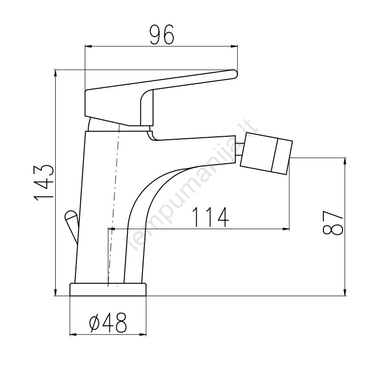 • Stalviršinis bidė maišytuvas su nuotėku.