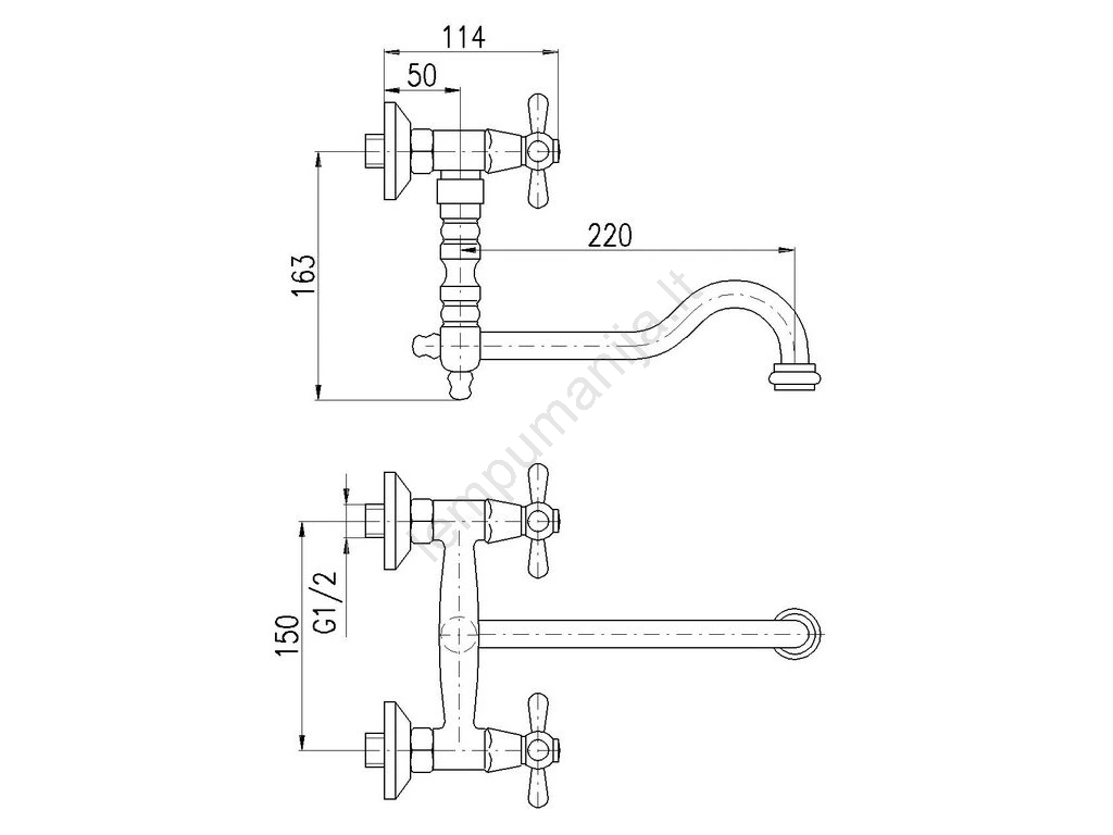 • Sieninis kriauklės/praustuvės maišytuvas su apvaliu pasukamu snapu.