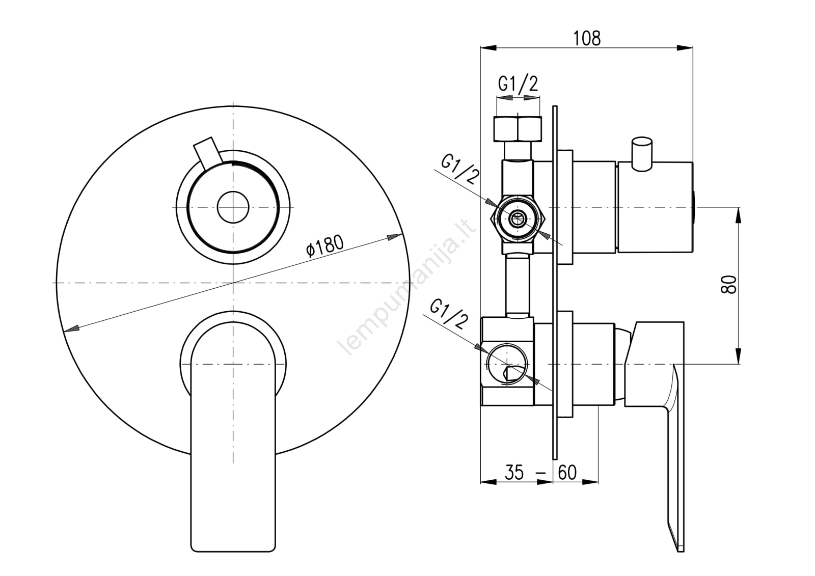 • 3 krypčių įmontuojamas maišytuvas su perjungikliu.