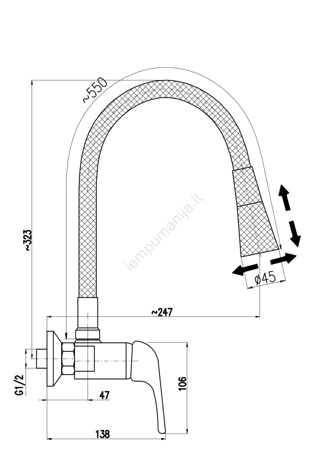 • Praktiškas pasukamas snapas palengvina indų plovimą ir leidžia patogiai nuplauti visą kriauklę ar praustuvą.