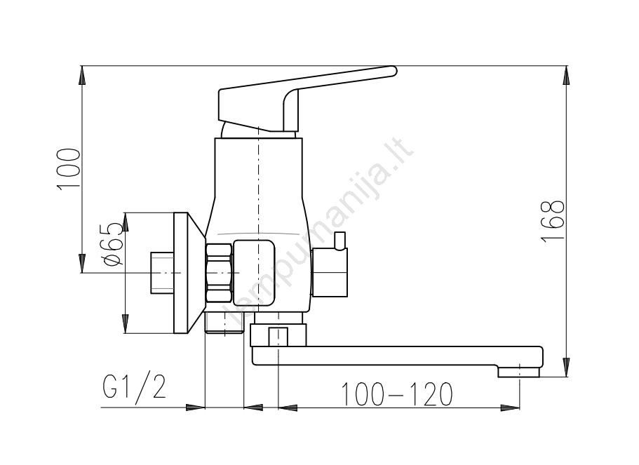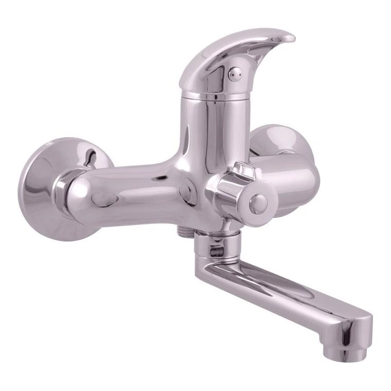 • Sieninis vonios maišytuvas su plokščiu pasukamu snapeliu.