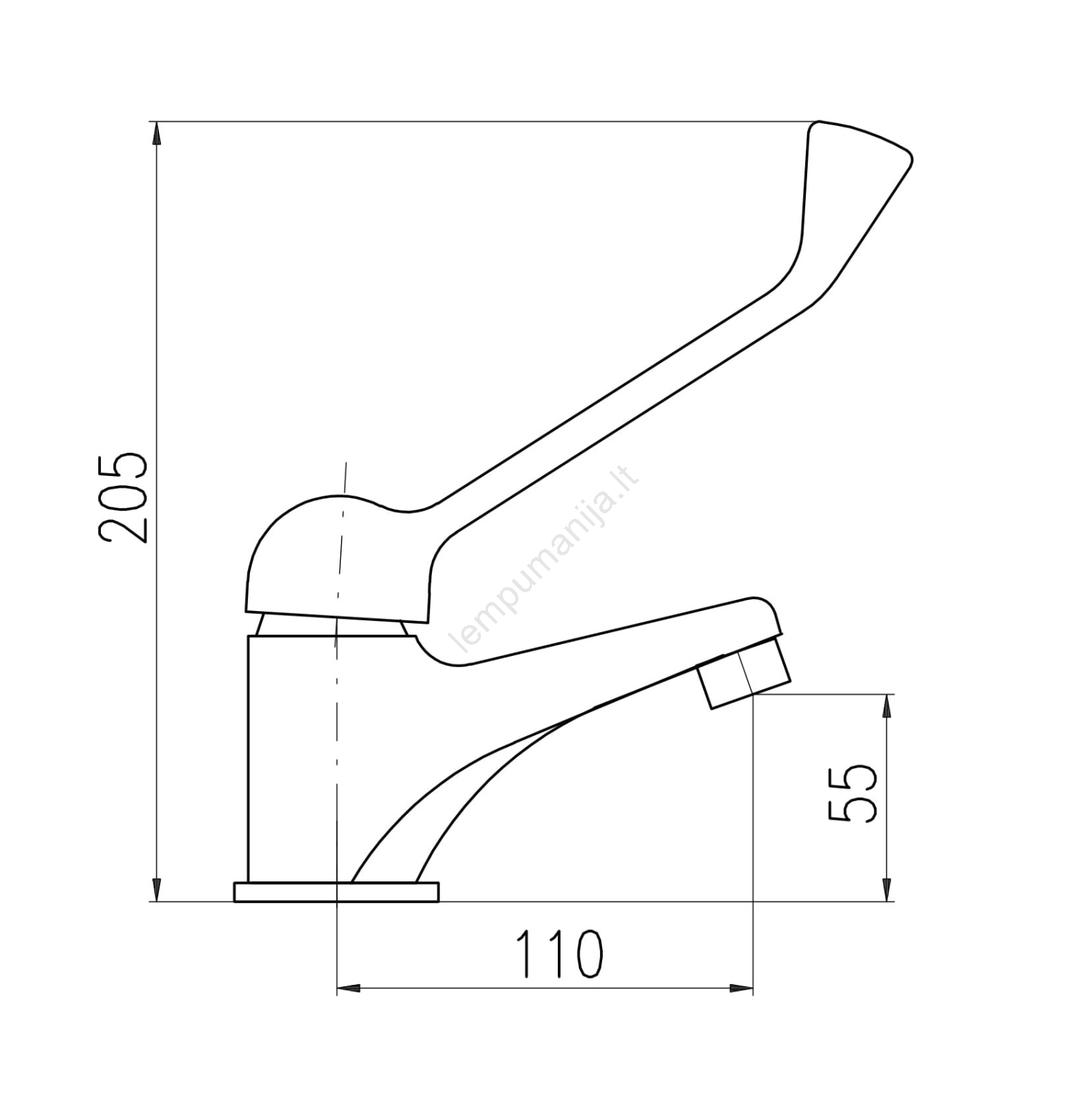• Leidžia higieniškai valdyti alkūne arba dilbiu, taip sumažinant rankų kontaktą su maišytuvu ir bakterijų perdavimo riziką.