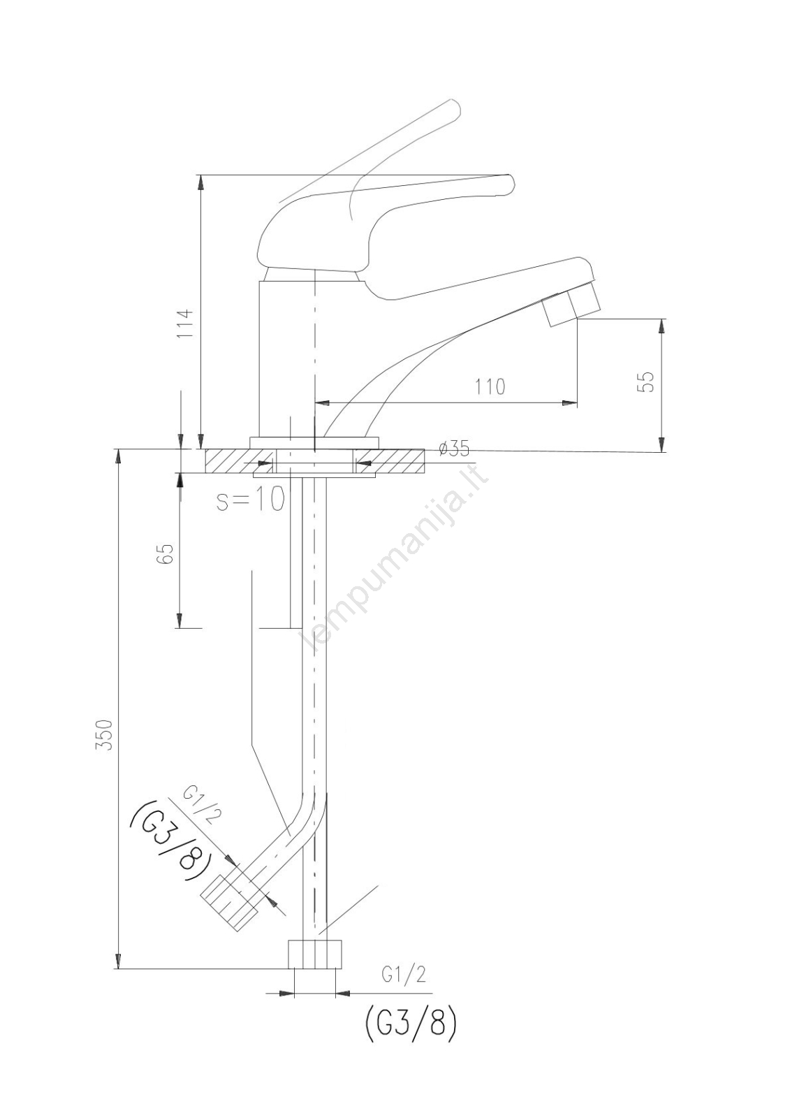 • Ant stalviršio montuojamas praustuvo maišytuvas be dugno vožtuvo.