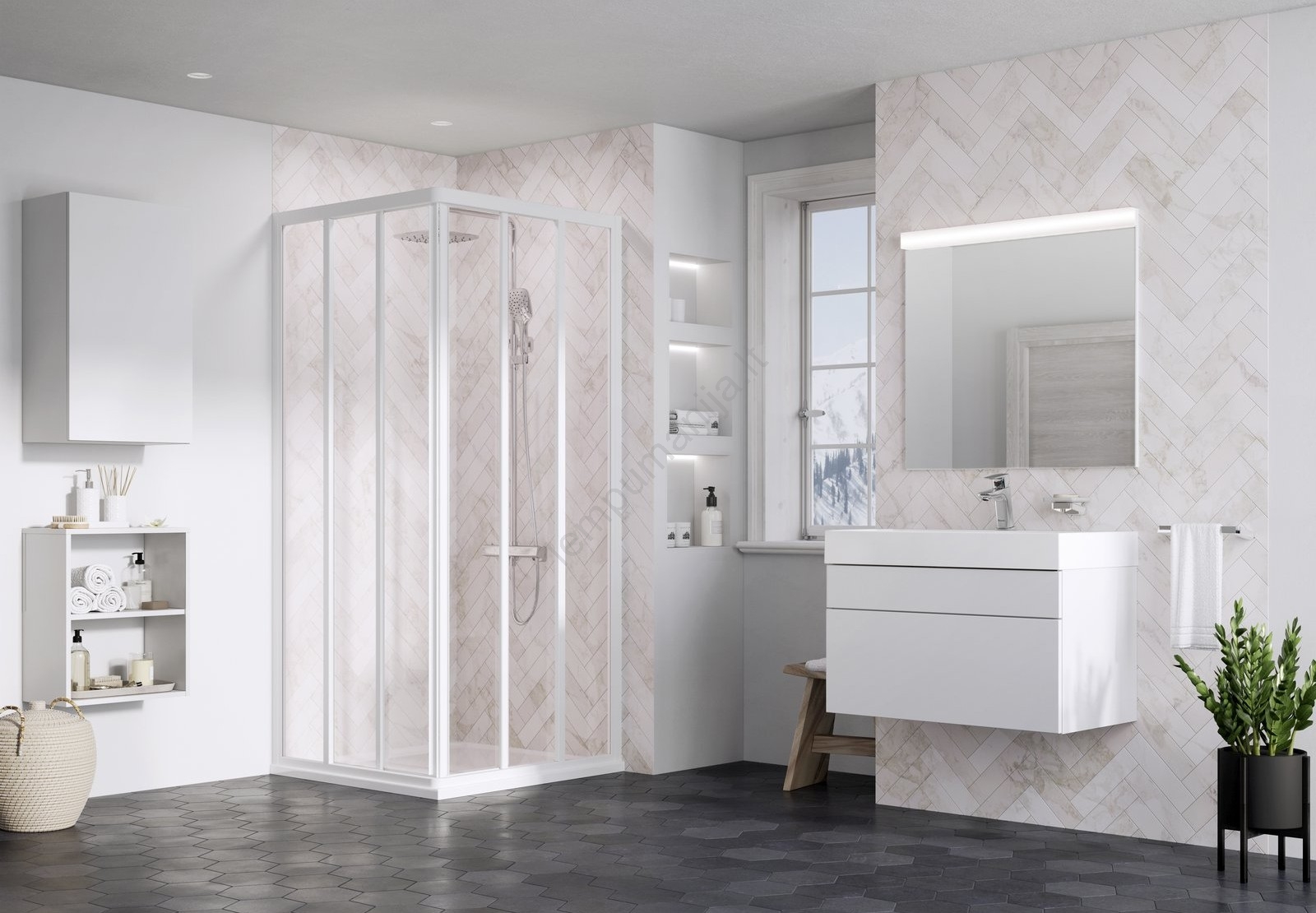 • Baltas rėmas kartu su skaidriu stiklu suteikia dušo kabinai modernų, laikui nepavaldų įvaizdį ir užtikrina ilgą eksploatavimo laiką.