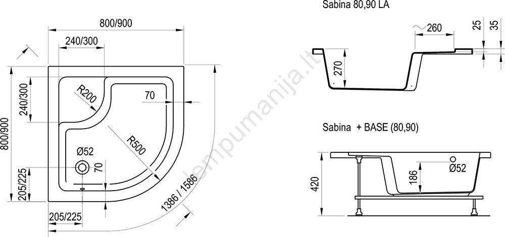 Ravak A217001020 - Ketvirčio formos dušo padėklas SABINA 90x90 cm, baltas | Lempumanija