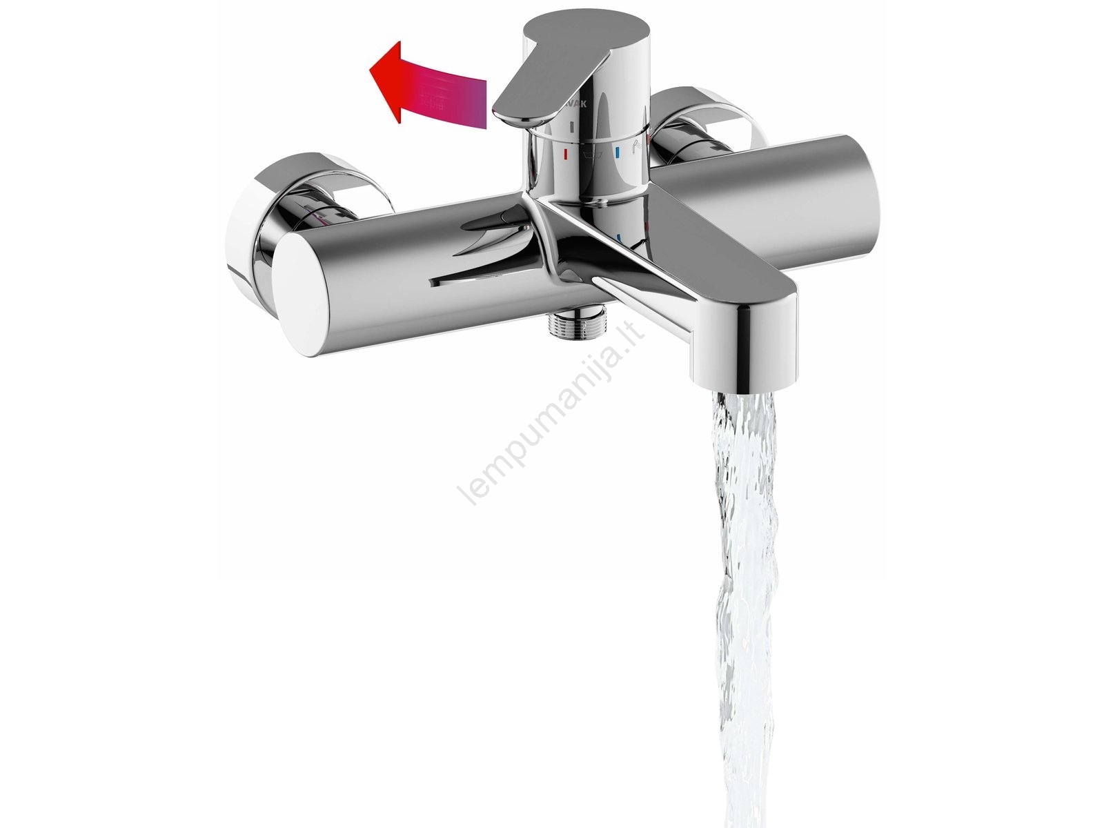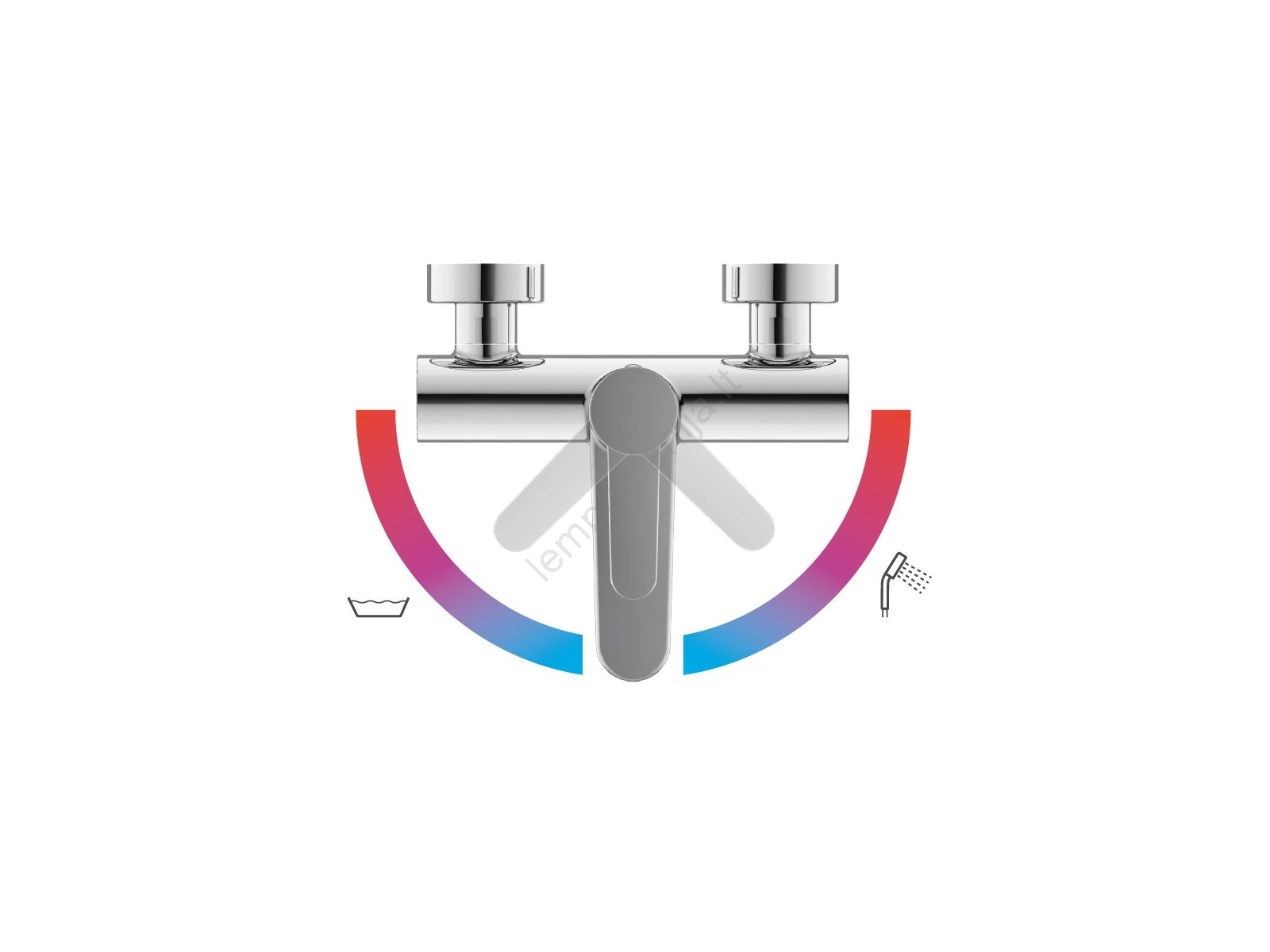 • Pasukus svirtelę į dešinę (dušas) arba į kairę (vonia), reguliuojama tik vandens temperatūra, o vandens srautas išlieka pastovus.