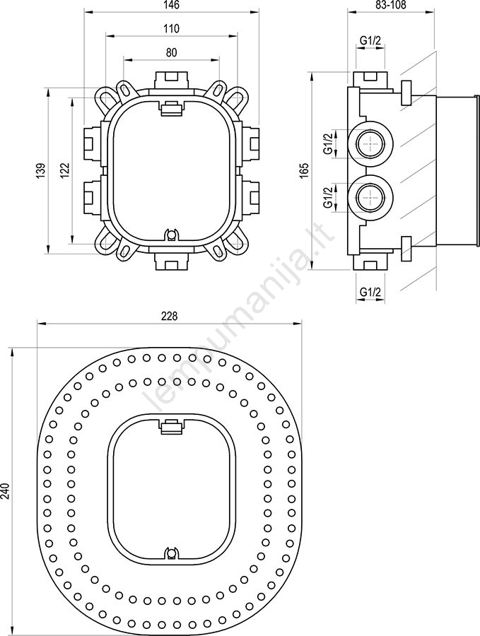 Ravak X070139 - Pagrindinis korpusas, skirtas įmontuojamiems maišytuvams R-BOX VARI 13,9x14,6 cm | L