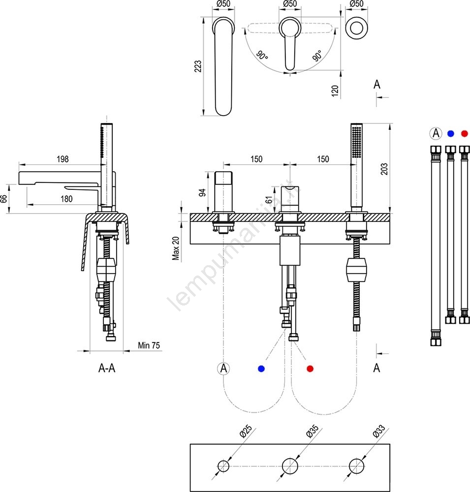 • Šis 3 angų vonios maišytuvas yra elegantiškas kiekvienos vonios kambario akcentas.