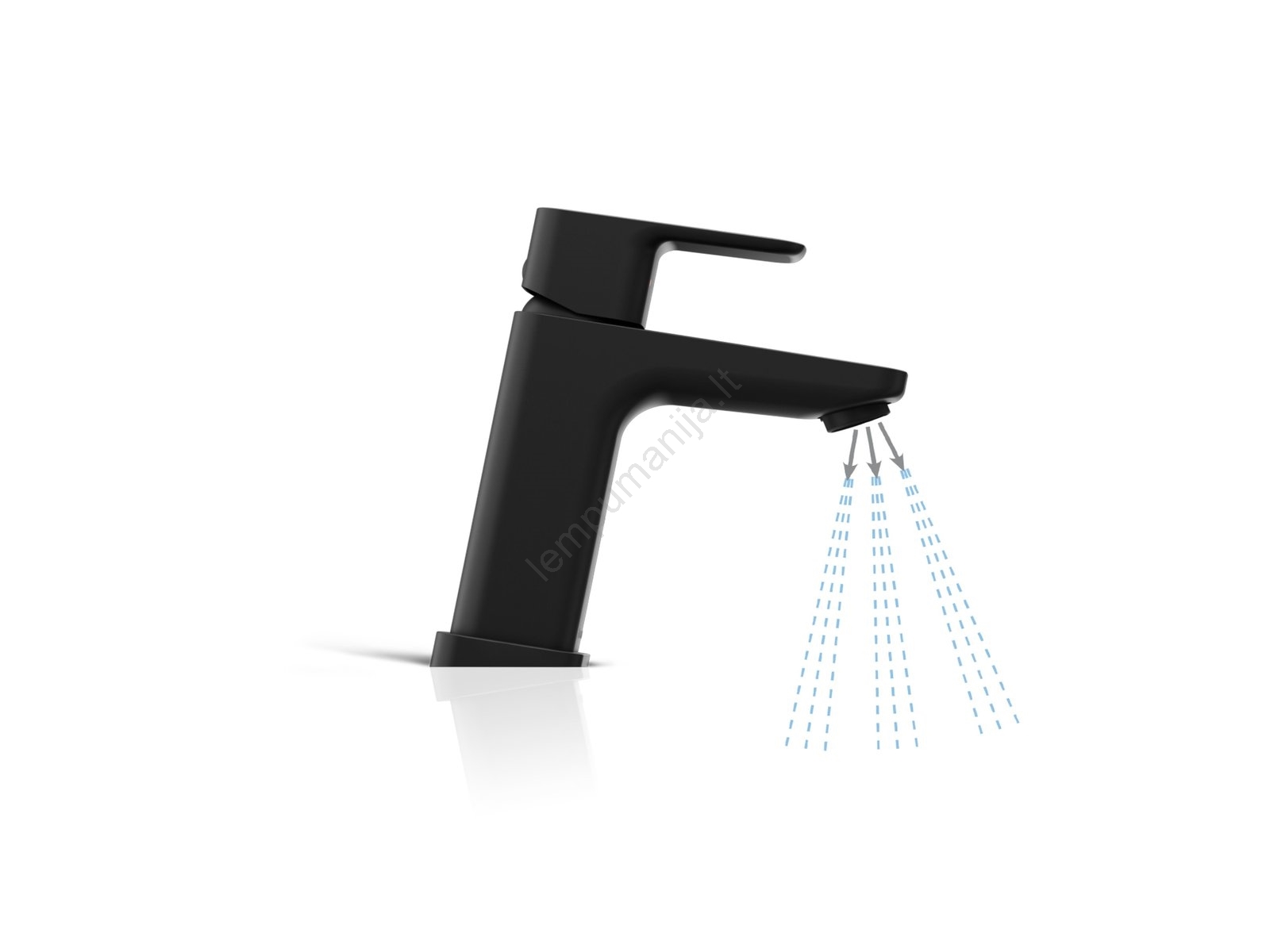 • Juodas variantas suteikia maišytuvui elegantišką išvaizdą ir puikiai dera su kitais vonios kambario elementais.