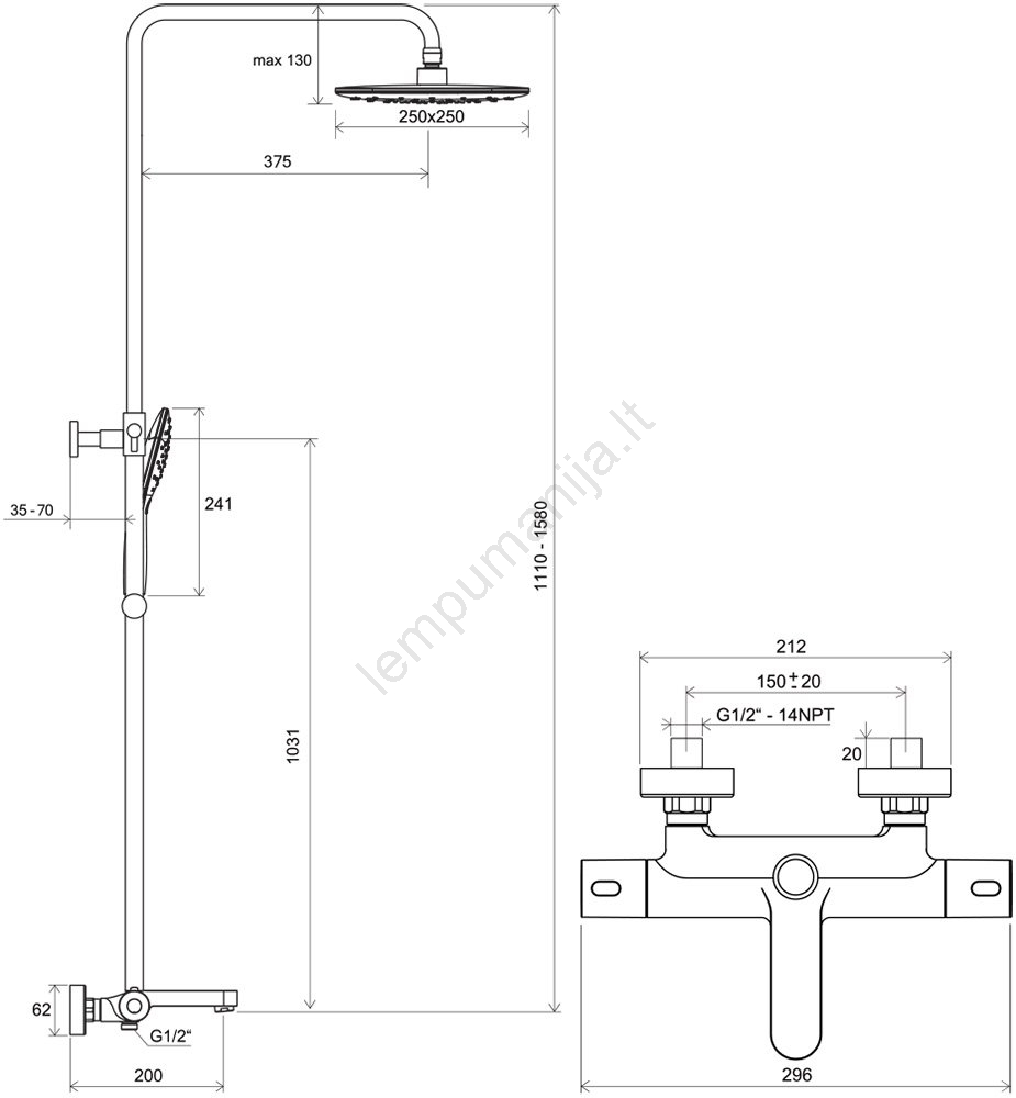 • Termostatinio stulpelio aukštis lanksčiai reguliuojamas nuo 111 iki 158 cm.