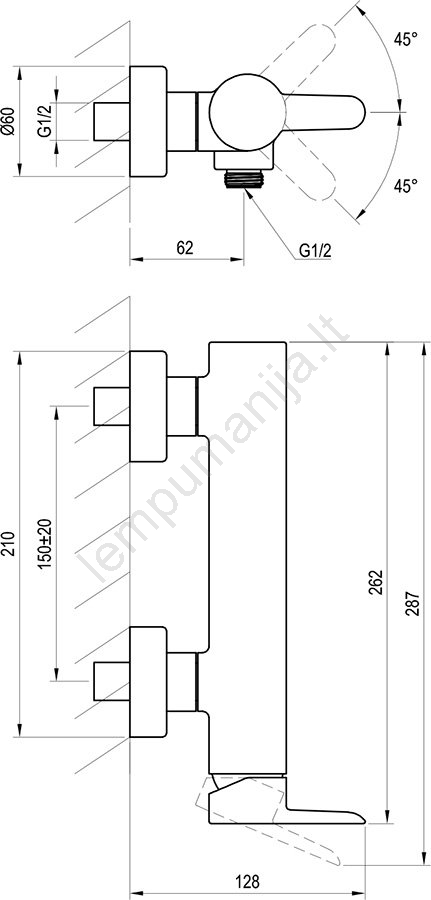 • 150 mm centro atstumas leidžia montuoti prie visų dušo kabinų.